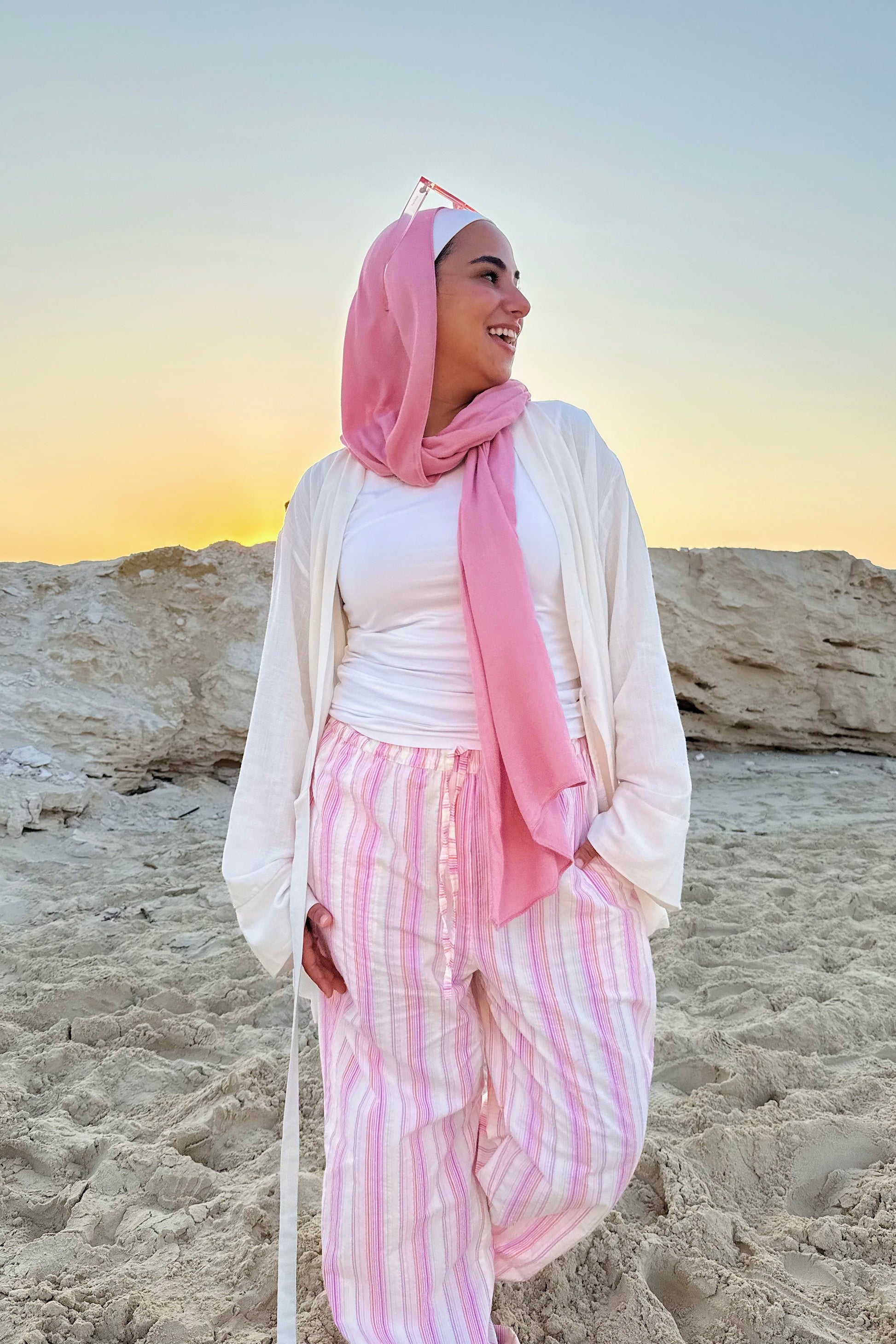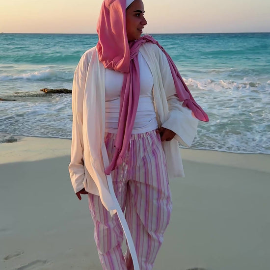 These striped pants go fast — and for good reason. Light as air and full of ease, they move with you from slow mornings to spontaneous plans. The elastic waist slips on without a second thought, while the playful stripes bring just enough boldness to turn heads. Every pair is finished with care — and when they’re gone, they’re gone. Don’t wait too long.